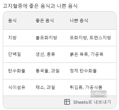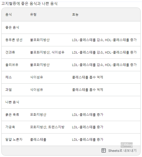 - 고지혈증은 식사요법만으로 개선되지 않는 경우 약물치료가 필요할 수 있습니다.