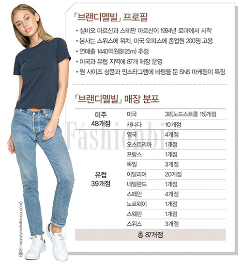 브랜디멜빌은 전 세계 여러 나라에 매장을 두고 있으며, 특히 미국과 유럽에서 많은 매장을 운영하고 있습니다. 한국에서도 성수동에 매장이 오픈하여 많은 관심을 받고 있습니다.